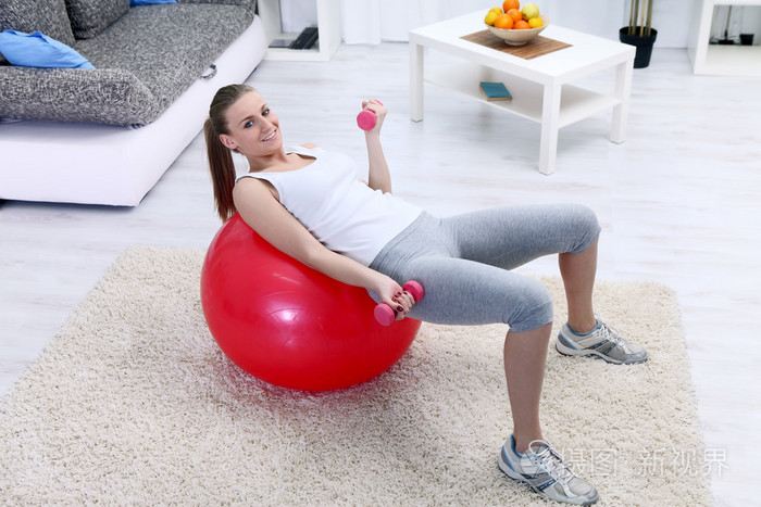 健身球也是一种适合在家使用的器材,它非常适合训练核心肌群,并且还可以多样化使用,如平衡、肌肉力量练习等。