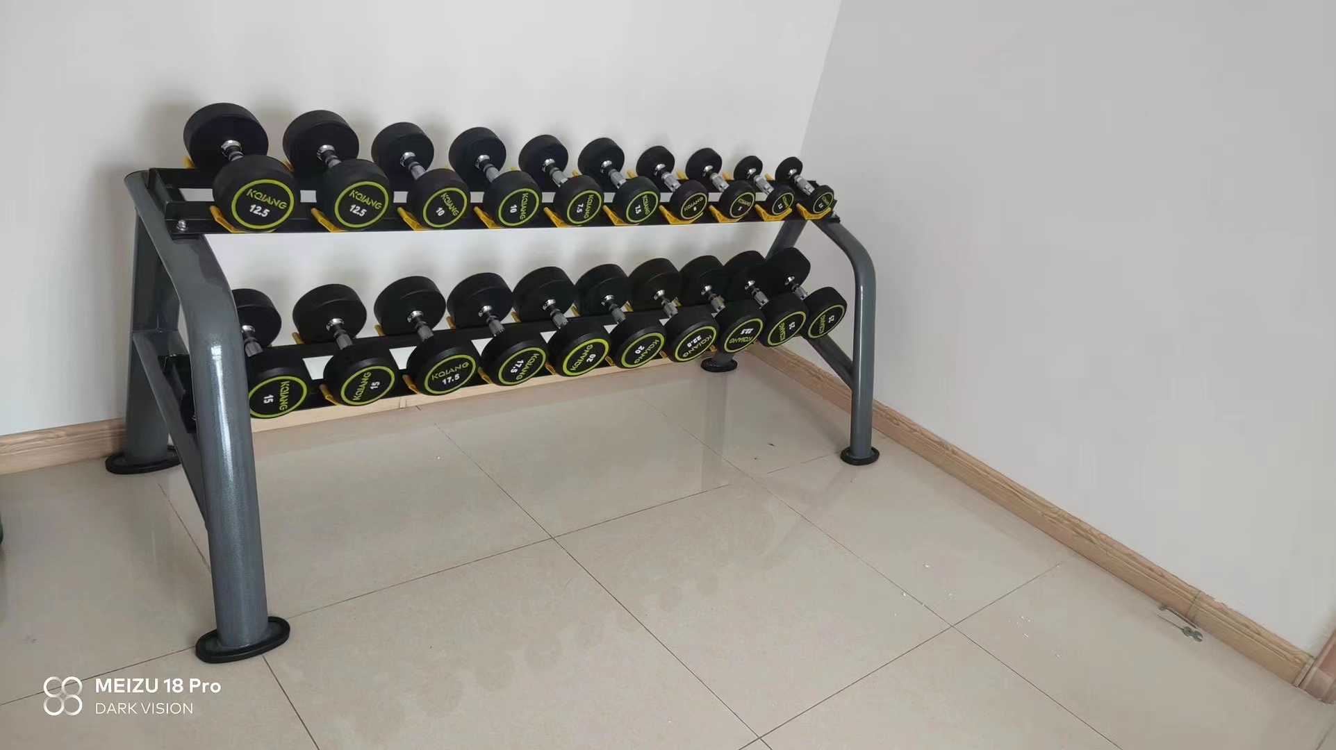 哑铃是健身房中最常见的器材之一。它常以各种不同的重量提供,可以根据个人的体力水平选择合适的重量。通过进行举重、推举和握力等训练,哑铃可以帮助提高力量和稳定性。此外,哑铃还可以用于不同的肌肉群训练,如臂力和腹肌。因其简单易用的特点,哑铃成为了最受欢迎的健身器材之一。